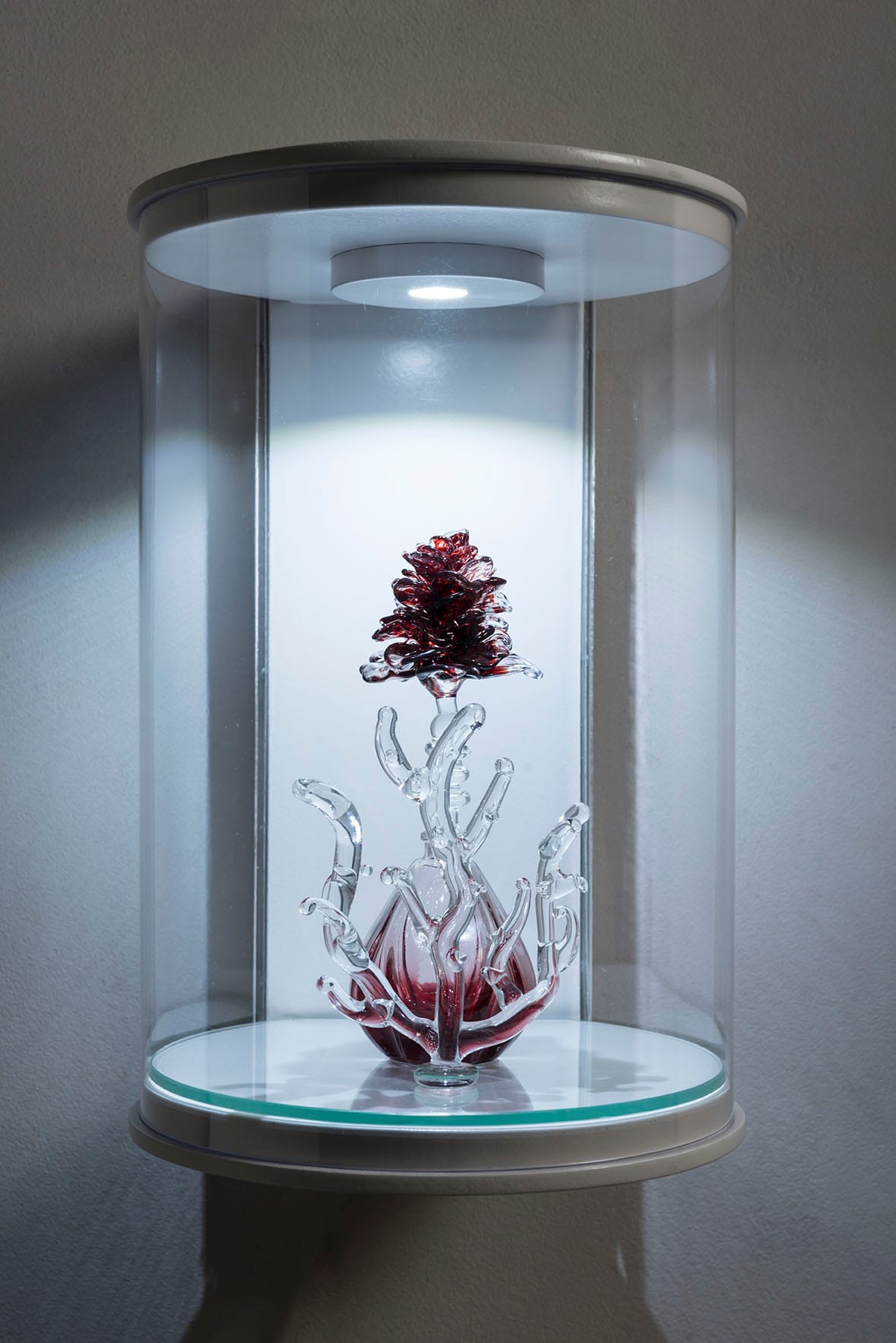 Materials: Perfume bottles, borosilicate glass and LED light.