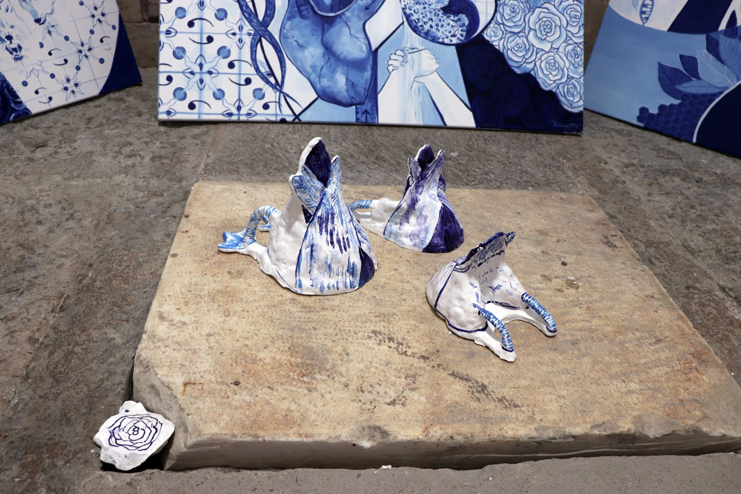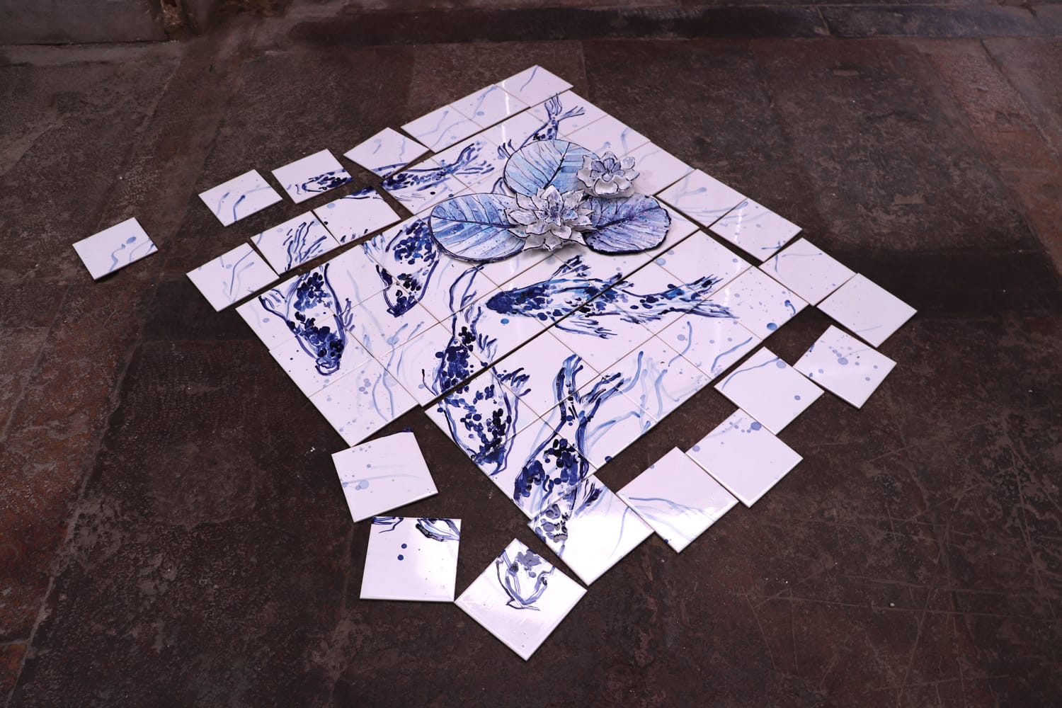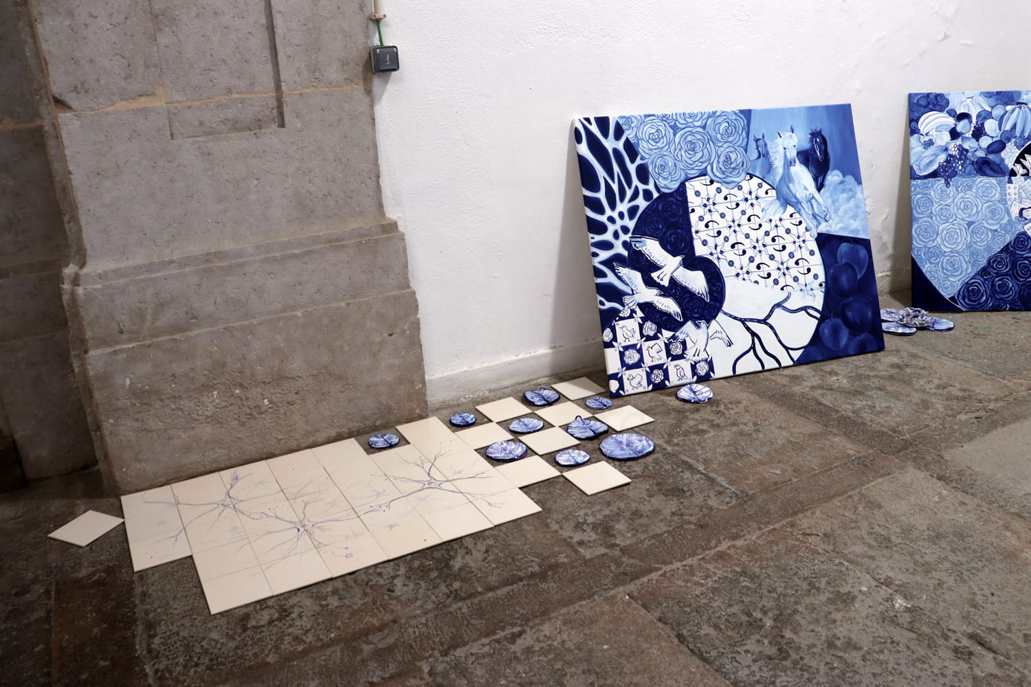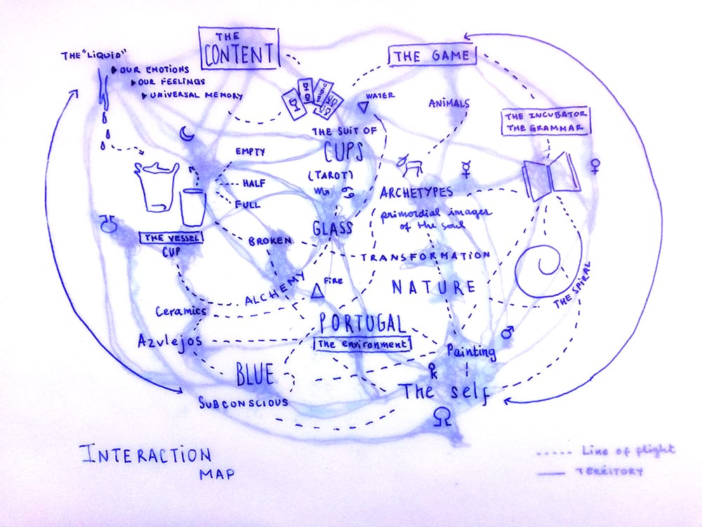 The exhibition of “Fishing in the inner sea” is rhizomatic, nomadic proposal. It is thought to inhabit the space in which is immersed, dialoguing with the architecture, the cracks, the marks, etc; becoming in this way a site specific installation. It is inspired by the suit of cups of the tarot and talks about the emotions and the inner world.