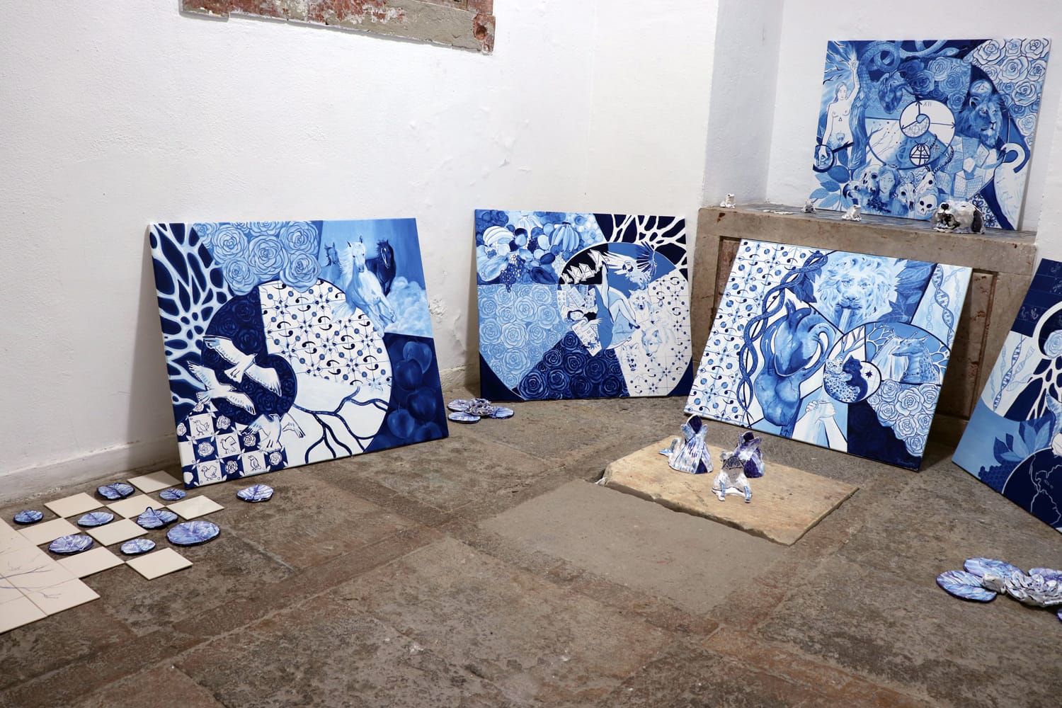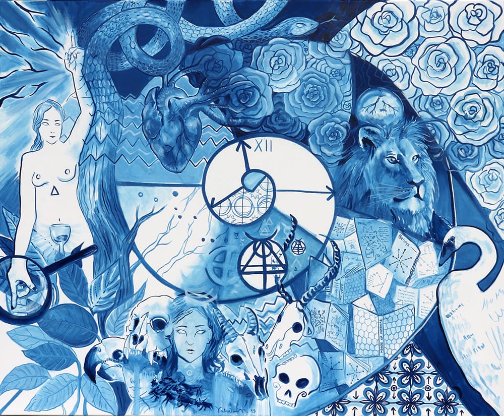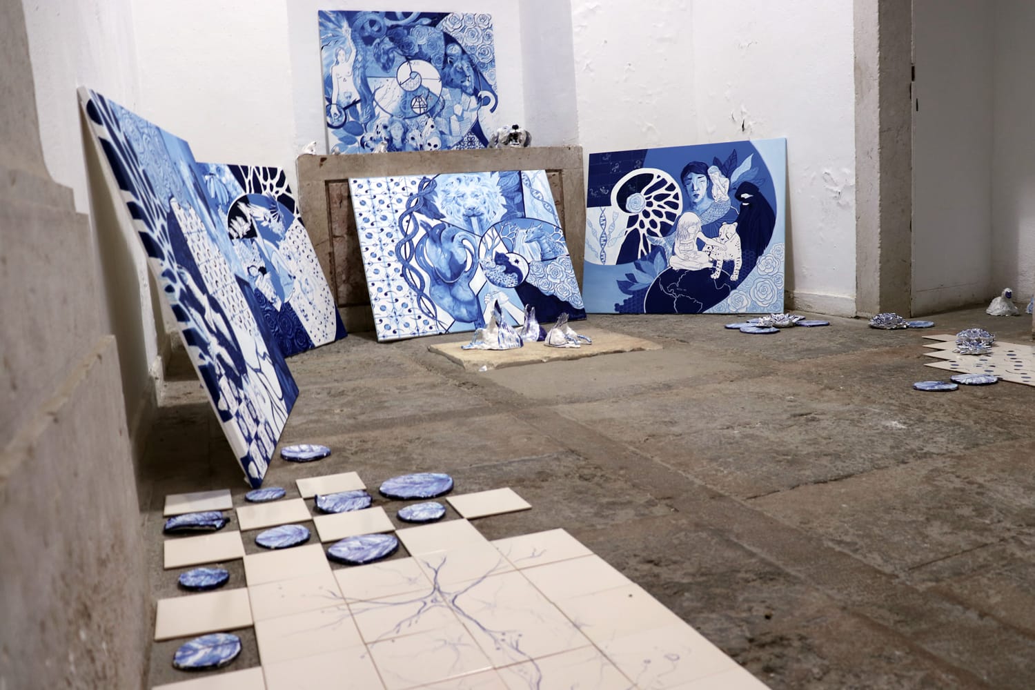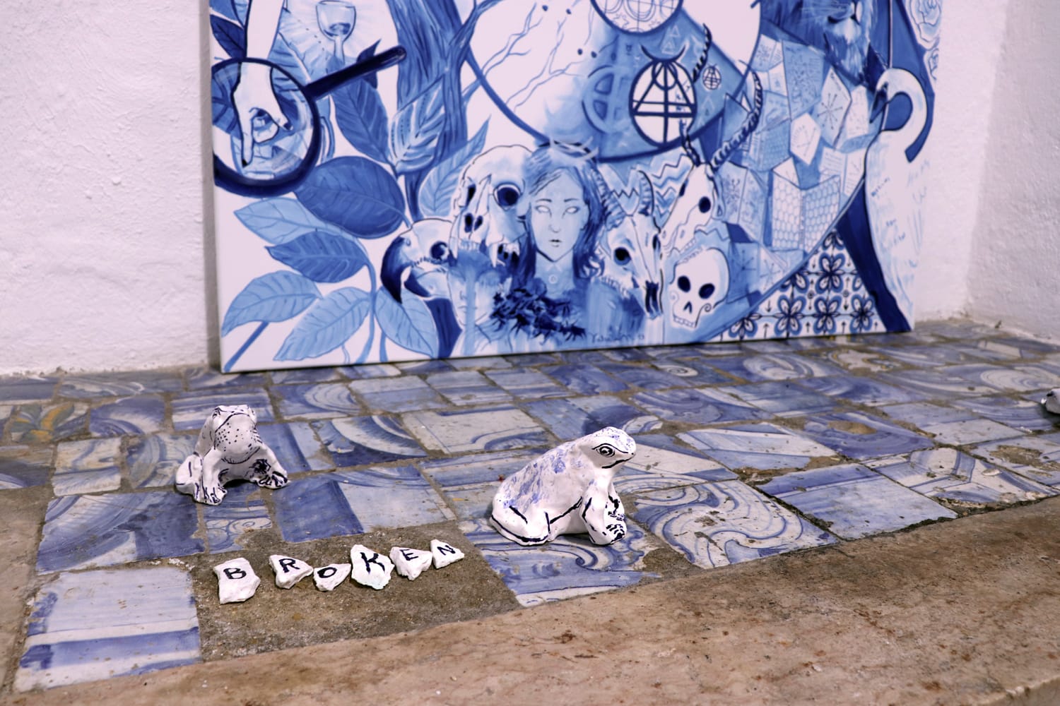 The exhibition of “Fishing in the inner sea” is rhizomatic, nomadic proposal. It is thought to inhabit the space in which is immersed, dialoguing with the architecture, the cracks, the marks, etc; becoming in this way a site specific installation. It is inspired by the suit of cups of the tarot and talks about the emotions and the inner world.