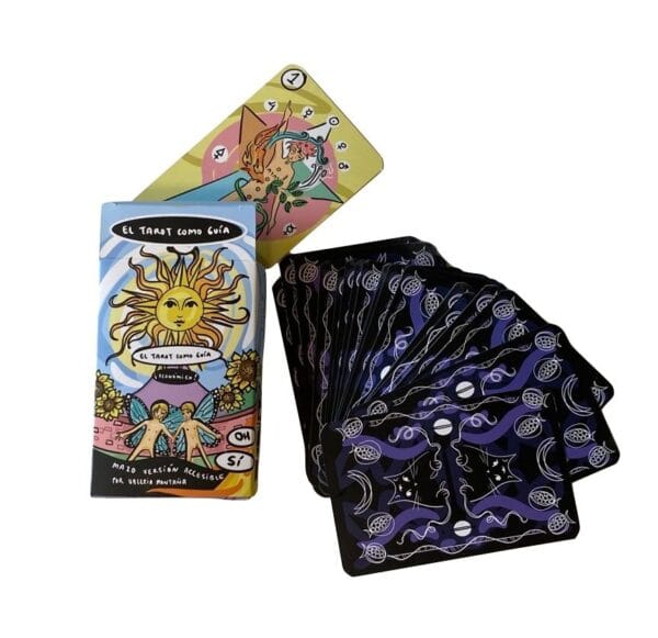 ¡Encuentra claridad usando el tarot como guía! Versión accesible y económica. Este mazo está diseñado para leerte las cartas a ti mismo o a otros, muy amigable para personas que están apenas empezando en el mundo del tarot. Está basado en el tradicional tarot Rider Waite Smith con imágenes traídas a la actualidad y con colores vivos, formas amables y rica simbología. Es muy visual, por lo cual la lectura se hace fluida. Diseñado y editado por la artista contemporánea y tarotista Valeria Montaña. 80 cartas: 1 carta de colección, 22 arcanos mayores y 56 arcanos menores. Cartas de 11 x 7,7 cms sin bordes, caja blanda sin libro de instrucciones pero con QR para el pdf de significados resumidos en línea.